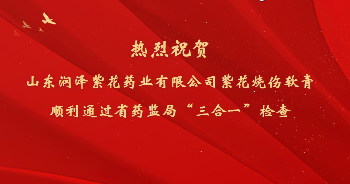 热烈祝贺山东润泽紫花药业有限公司紫花烧伤软膏顺利通过省药监局“三合一”检查